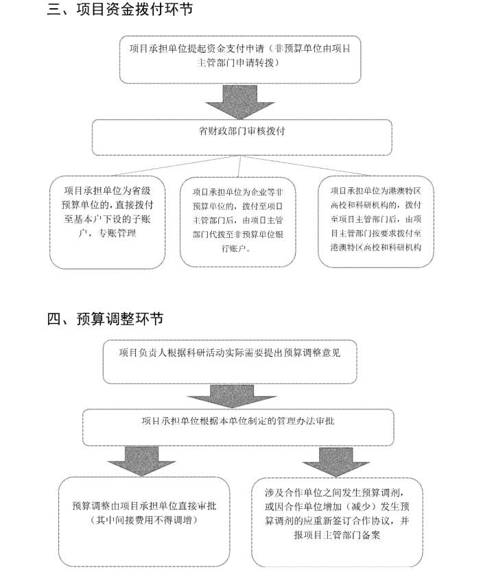 第二十三條 資助香港、澳門特區(qū)高校、科研機構(gòu)的省科研項目經(jīng)費,應(yīng)按照國庫集中支付的有關(guān)規(guī)定和向境外支付的有關(guān)要求,由項目主管部門及時組織撥付至港澳特區(qū)高校、科研機構(gòu)。其中,港澳特區(qū)高校、科研機構(gòu)與省內(nèi)單位聯(lián)合承擔的項目,項目經(jīng)費可分別撥付至港澳特區(qū)高校、科研機構(gòu)和省內(nèi)單位。