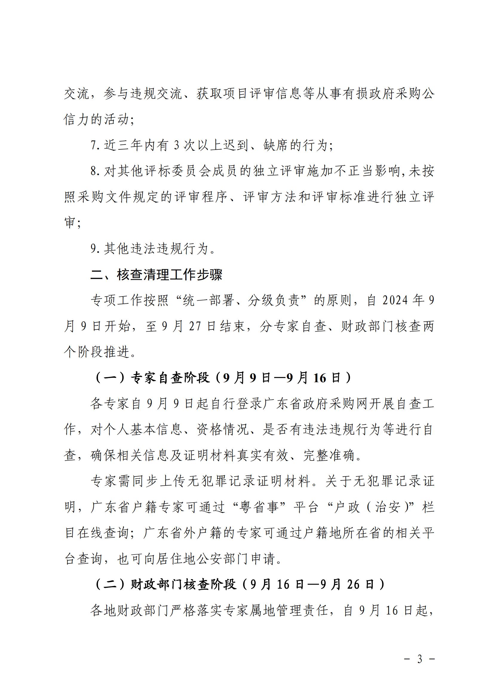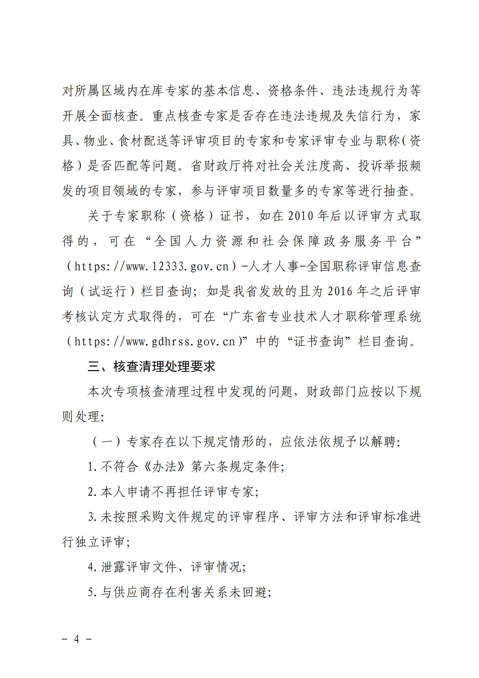 廣東省財政廳關(guān)于開展政府采購評審專家專項核查清理工作的通知